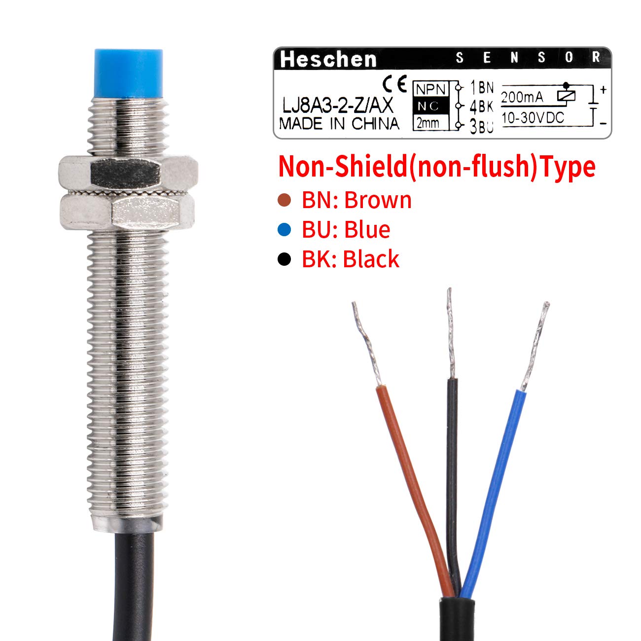 Heschen M8 Inductive Proximity Sensor Switch Non-Embeddable Type LJ8A3-2-Z/AX Detector 2mm 10-30VDC 200mA NPN Normally Closed(NC) 3 Wire