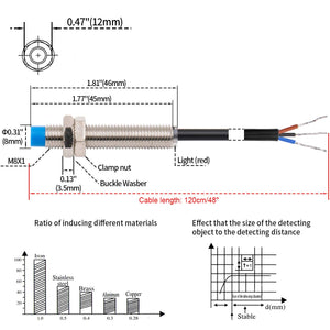 Heschen M8 Inductive Proximity Sensor Switch Non-Embeddable Type LJ8A3-2-Z/BY Detector 2mm 10-30VDC 200mA PNP Normally Open(NO) 3 Wire