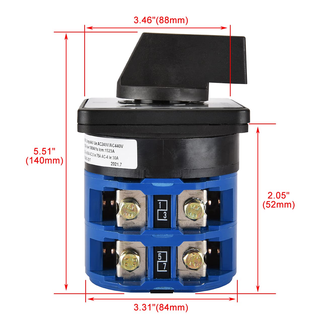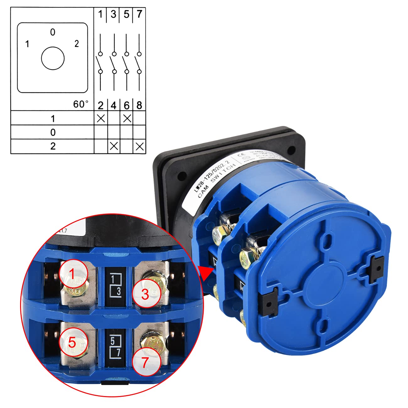 Heschen Rotary Changeover Cam Switch 125A 660VAC 2 Phase ON/OFF/ON 3 Position 8 Terminals LW28-125/D202.2
