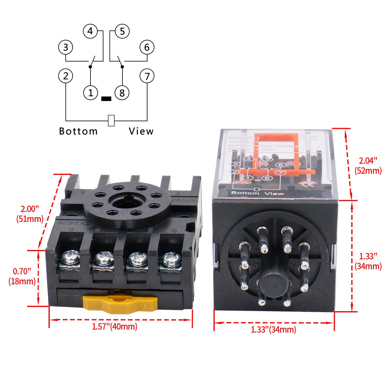 Heschen Gereral Purpose Relay MK2P-I DC 12V Coil DPDT 8 Pin with Plug-in Terminal Socket PYF83A