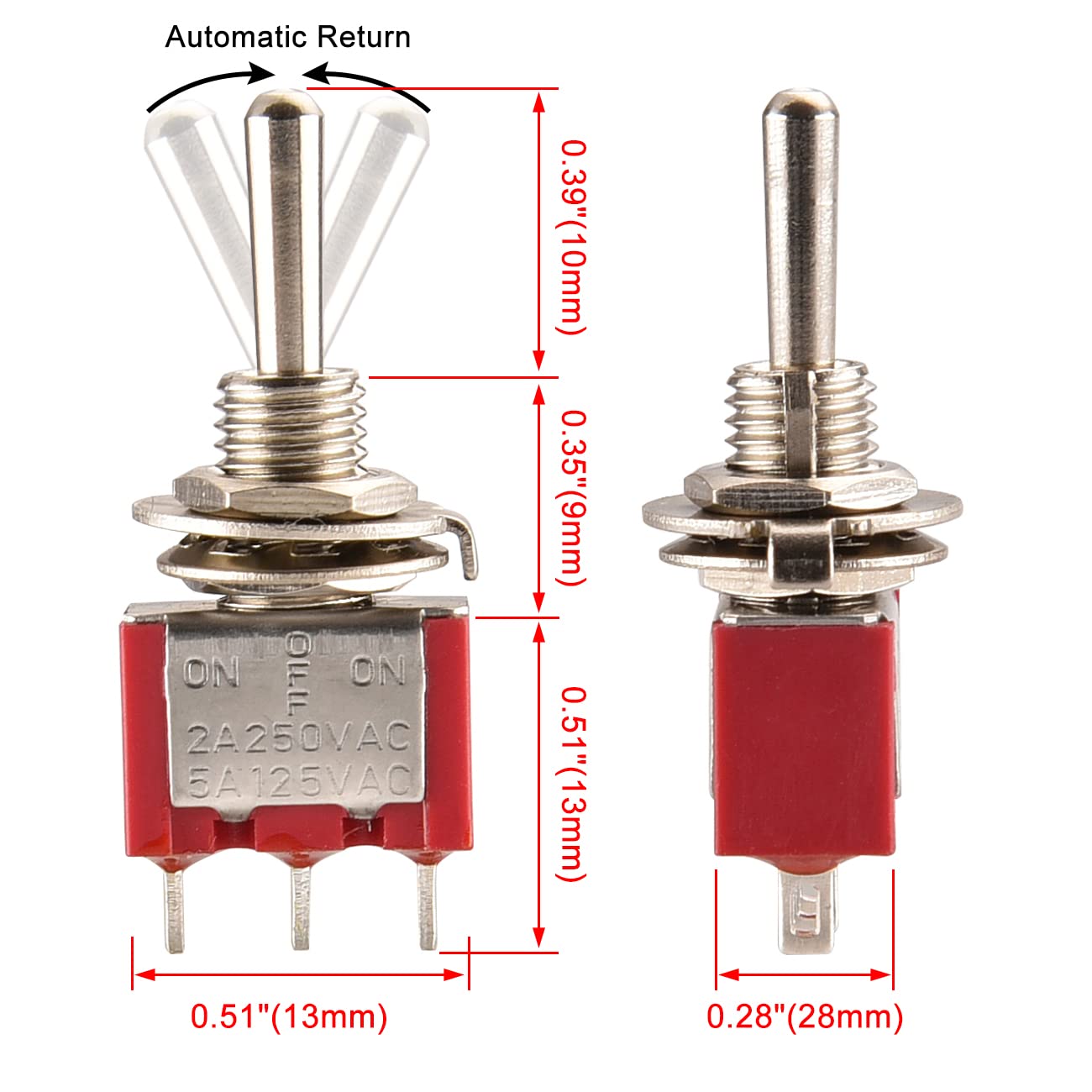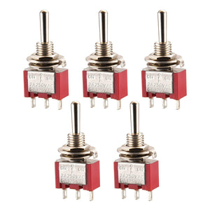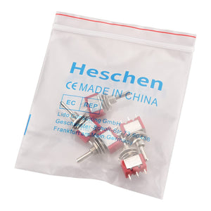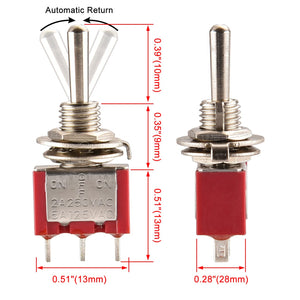 Heschen Mini Momentary Toggle Switch MTS-123, (ON)-OFF-(ON) SPDT, 3 Pin, 2A 250V, 5A 120V, UR listed Pack of 5