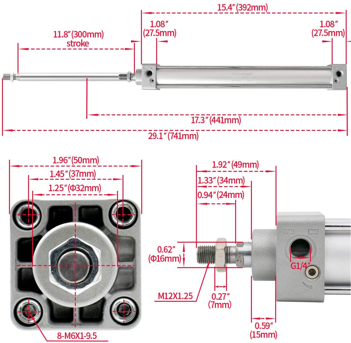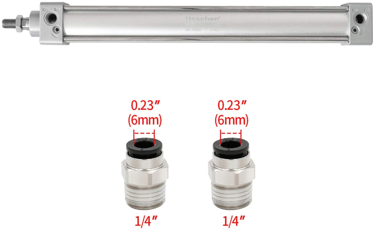 Heschen Pneumatic Air Cylinder SC 40 Series PT 1/4 Port 40mm(1-5/8") Bore Screwed Piston Rod Dual Action with 2 Fittings
