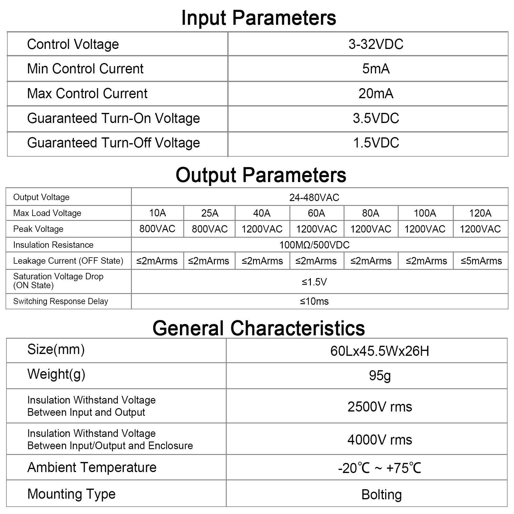 Heschen Single Phase AC/DC Solid State Relay SSR-60DA 3-32 VDC/24-480VAC 60A 50-60Hz