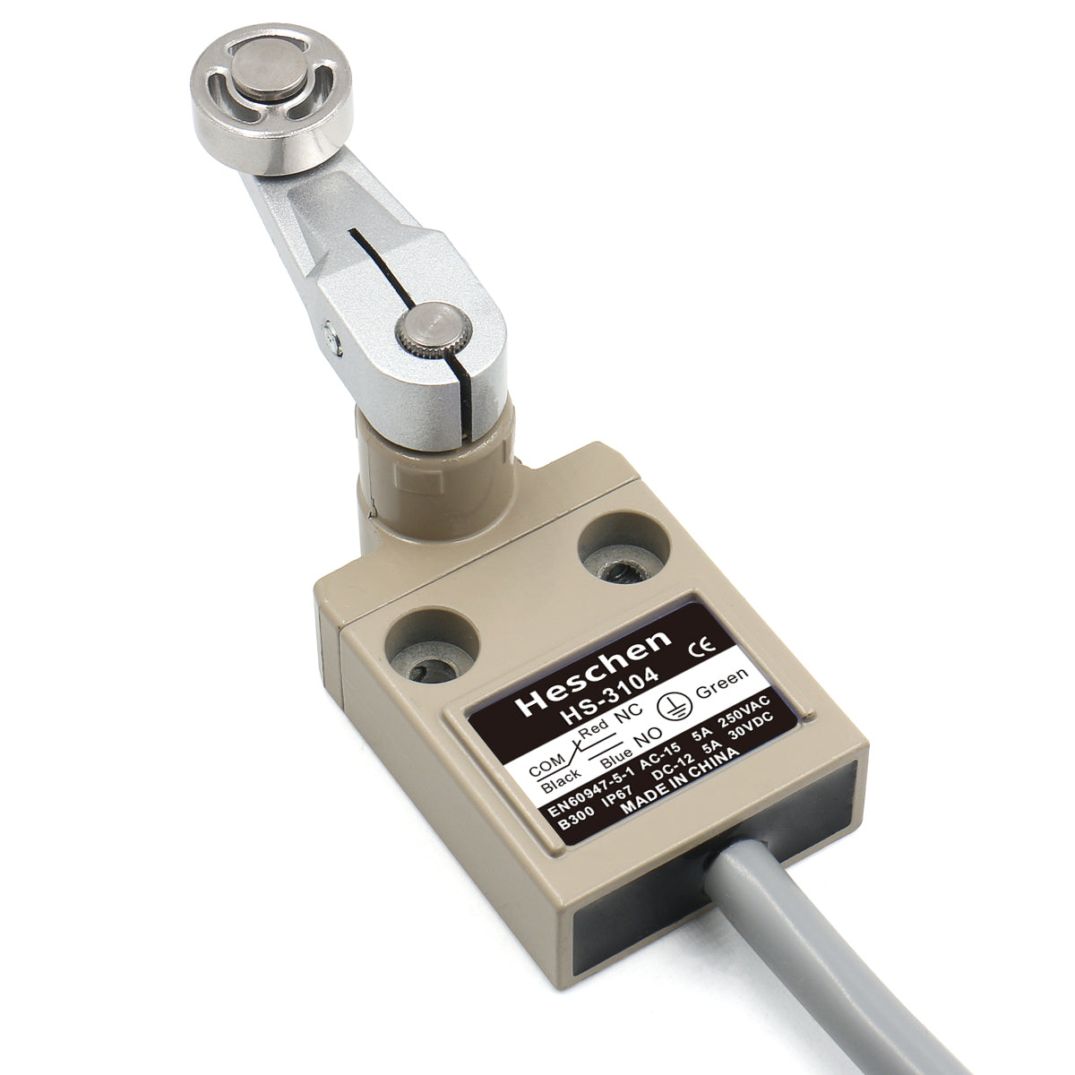 Heschen Compact Prewired Roller Lever Plunger Limit Switch HS-3104(TZ-3104)SPDT NO + NC Momentary AC 250V 5A IP67 Waterproof